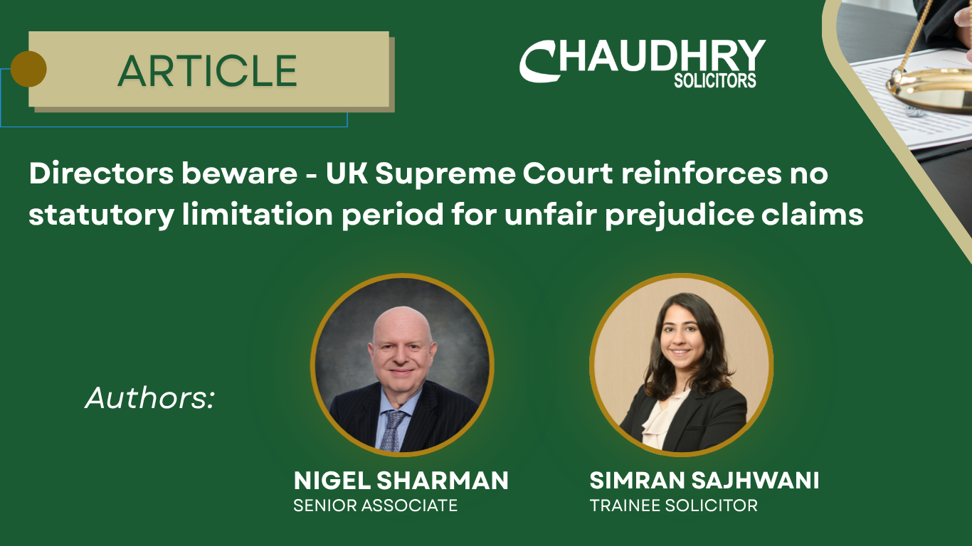 Directors beware - UK Supreme Court reinforces no statutory limitation period for unfair prejudice claims